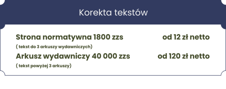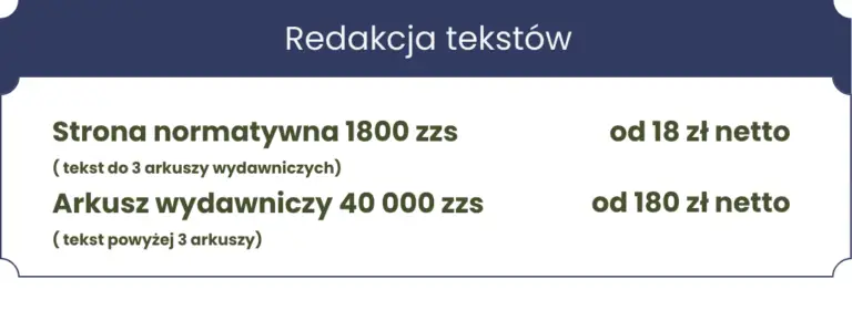 - zakresu usług (redakcja czy korekta, jedno czytanie czy dwa)